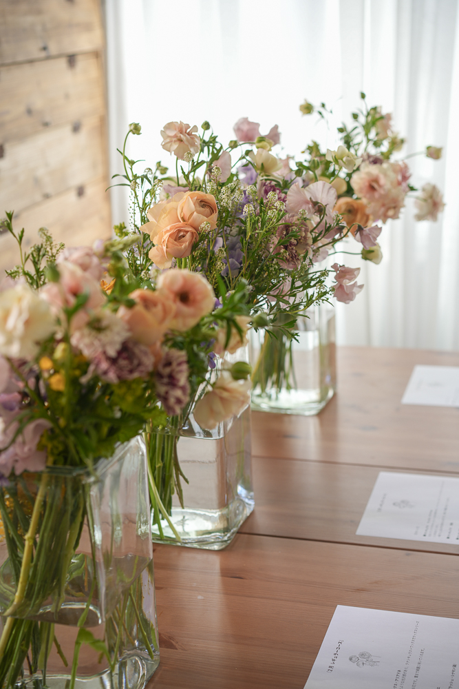 レッスン前の準備時間。 花を一本ずつ水に入れて、並べて、また少し眺めてみる。 「今日のこの組み合わせも可愛いなー♡」 そんな確認をしながら、行ったり来たり。 楽しんでもらえるかな、とか ちゃんと束ねやすいかな、とか。 そんなことを考えながら、準...