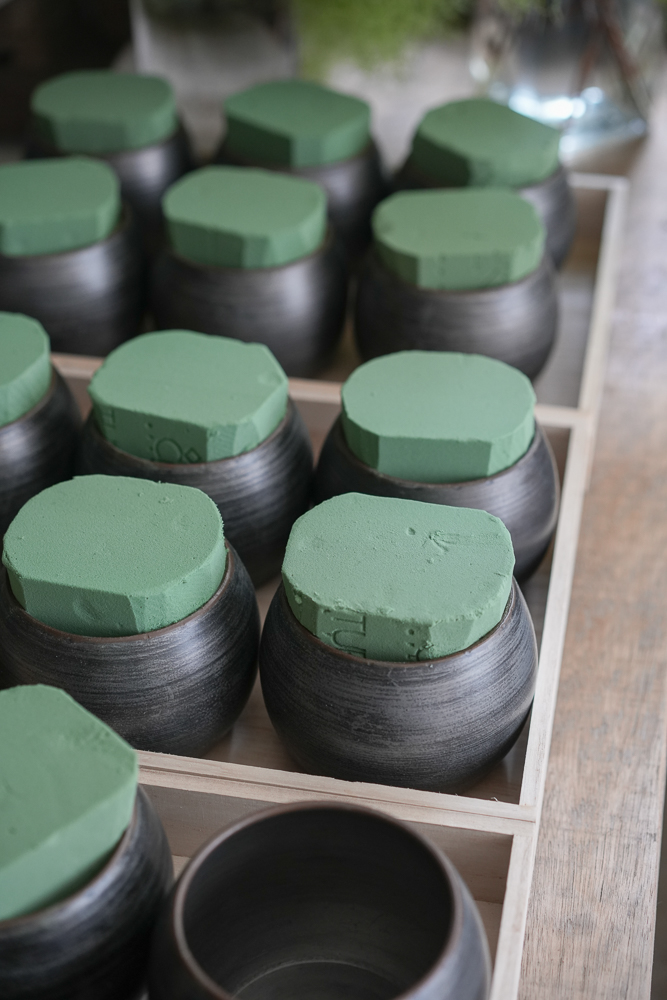 質感や色が少し変わるだけで、花の見え方も変わるので”器選び”は大切な作業。