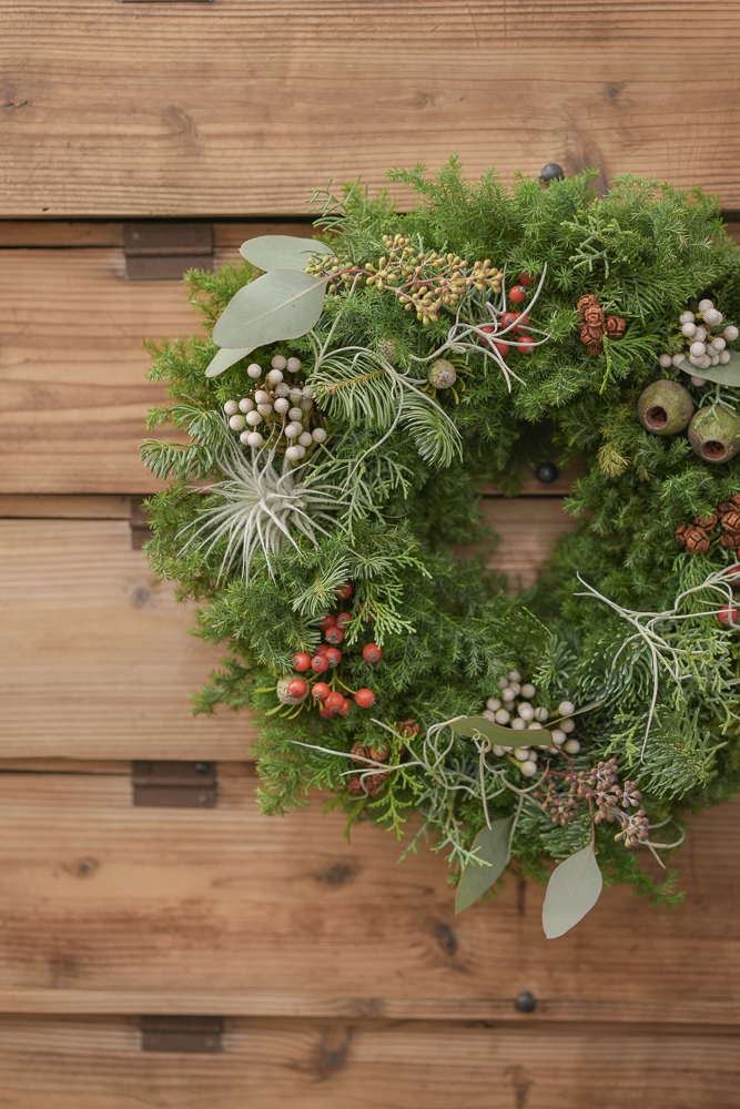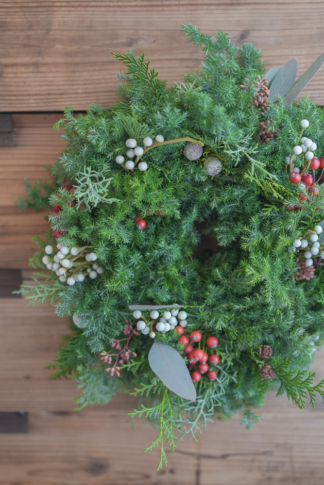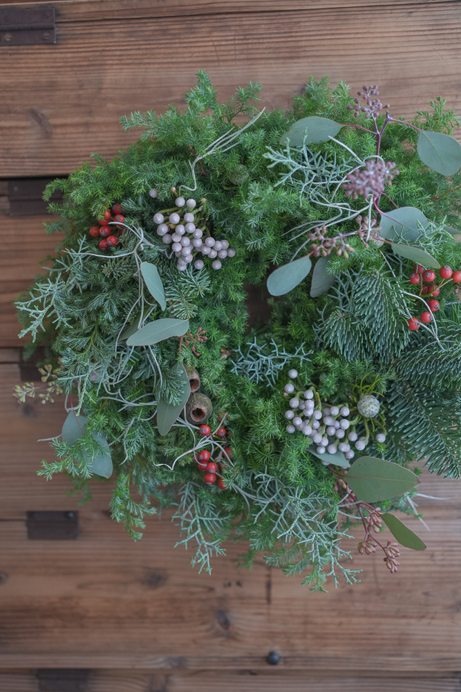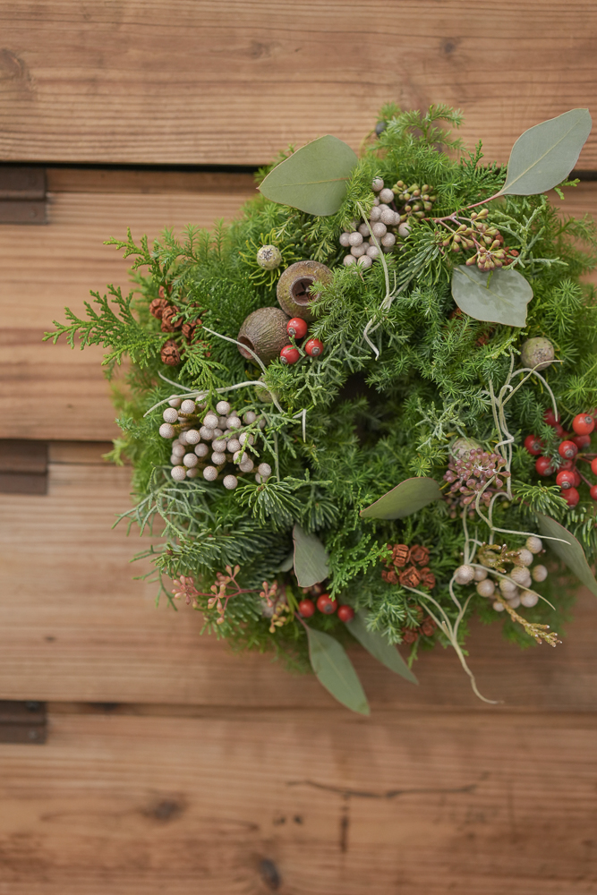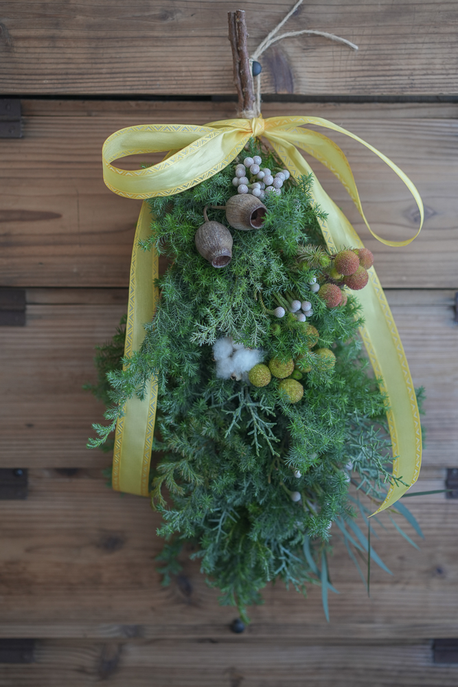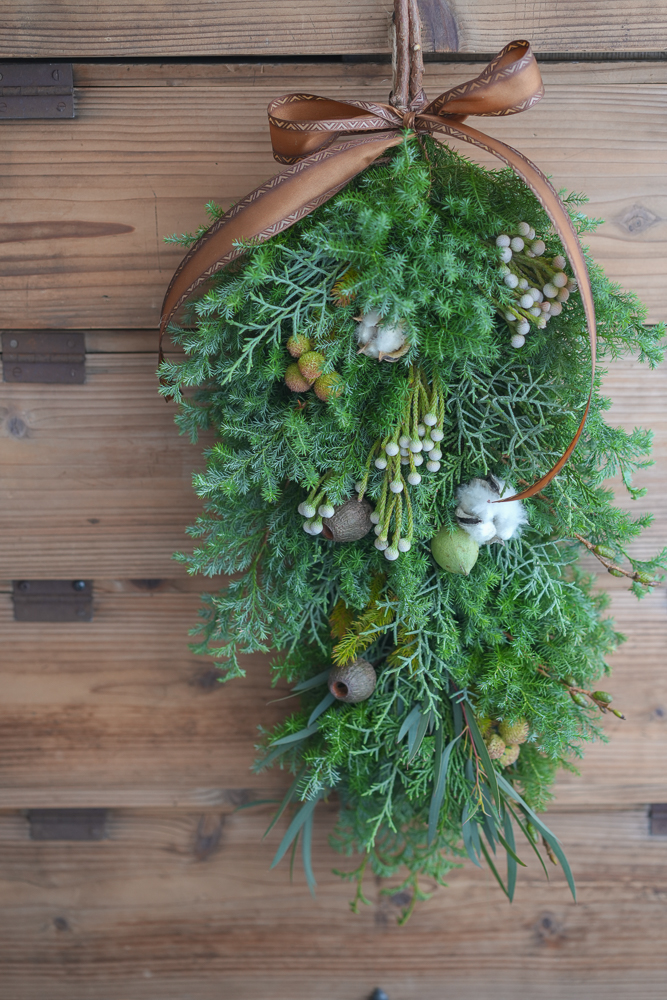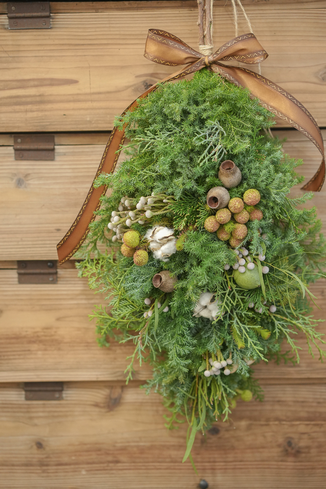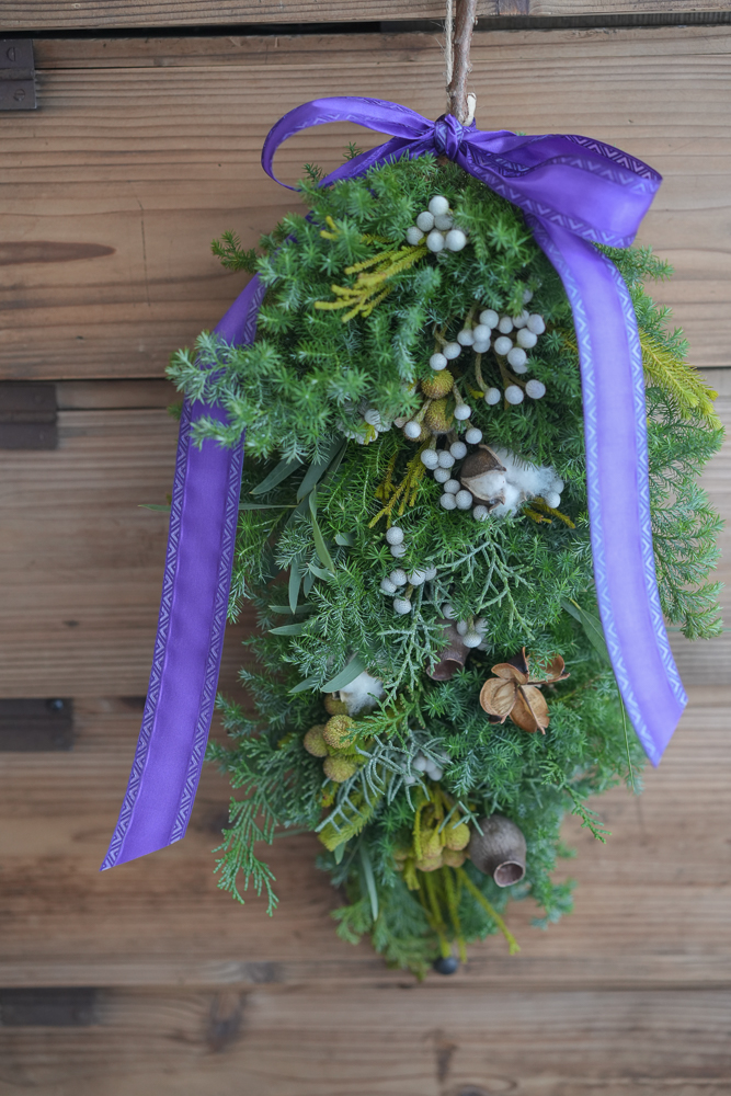 ローブのリースの作り方は少し特殊。ワイヤーを使わないのが特徴です。