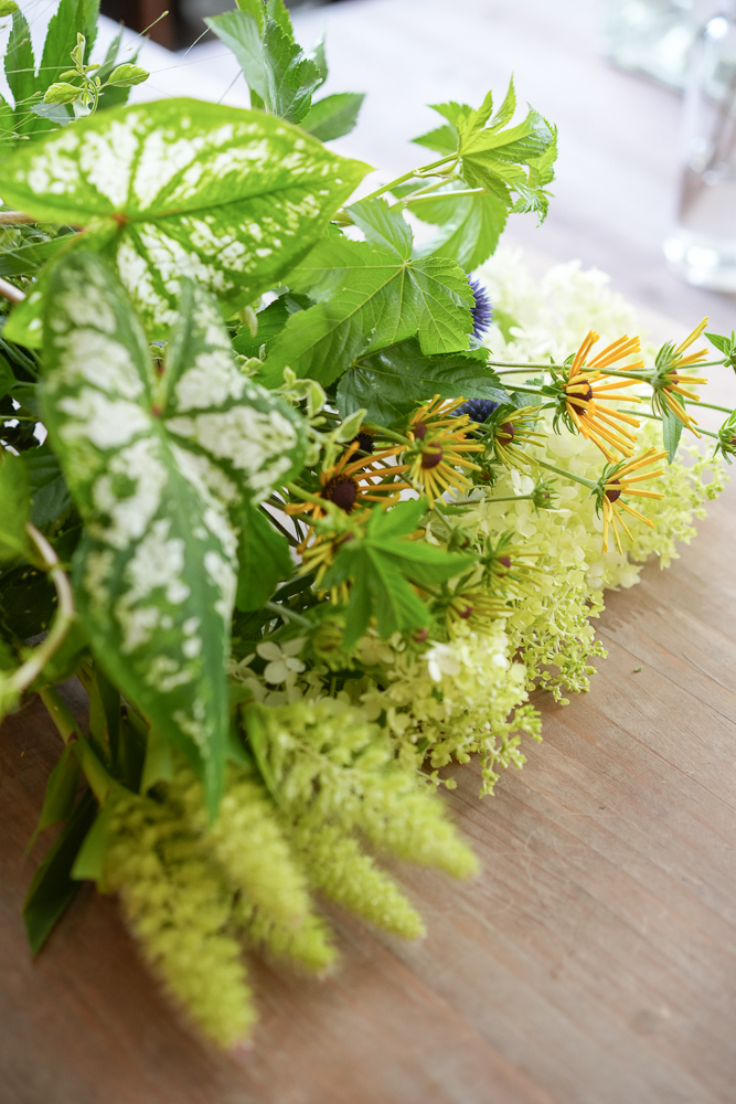 今回の花材はこんな感じ。ライトグリーンの葉物たちがとっても瑞々しいです。