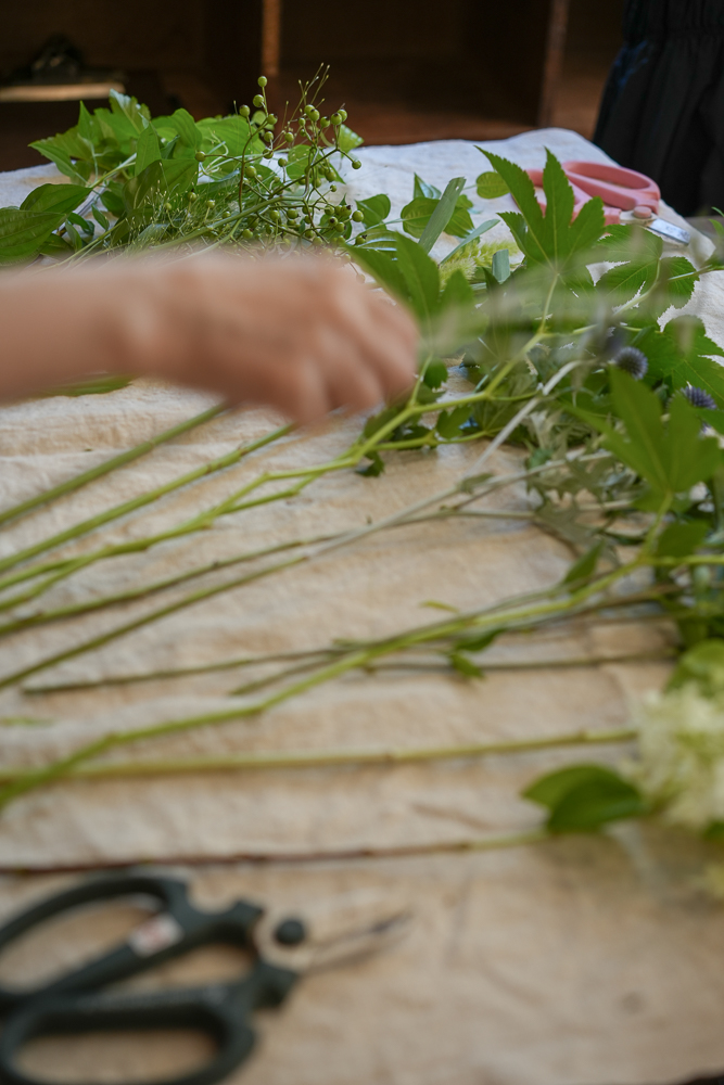 ローブのレッスンでは、繊細な小花やグラミネ(イネ科の植物)を多く使います。
