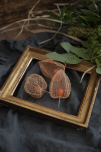スモークツリーは落葉性の樹木で、初夏に花が咲き、秋には紅葉して、冬になるとケムリのように見える部分は落ちてしまいます。花糸の色は、赤紫や緑があり、ふわふわとしてやさしいアンティークな印象です。ドライフラワーにしたい場合は、そのまま逆さに吊るしておくと綺麗な状態で乾燥していきます。